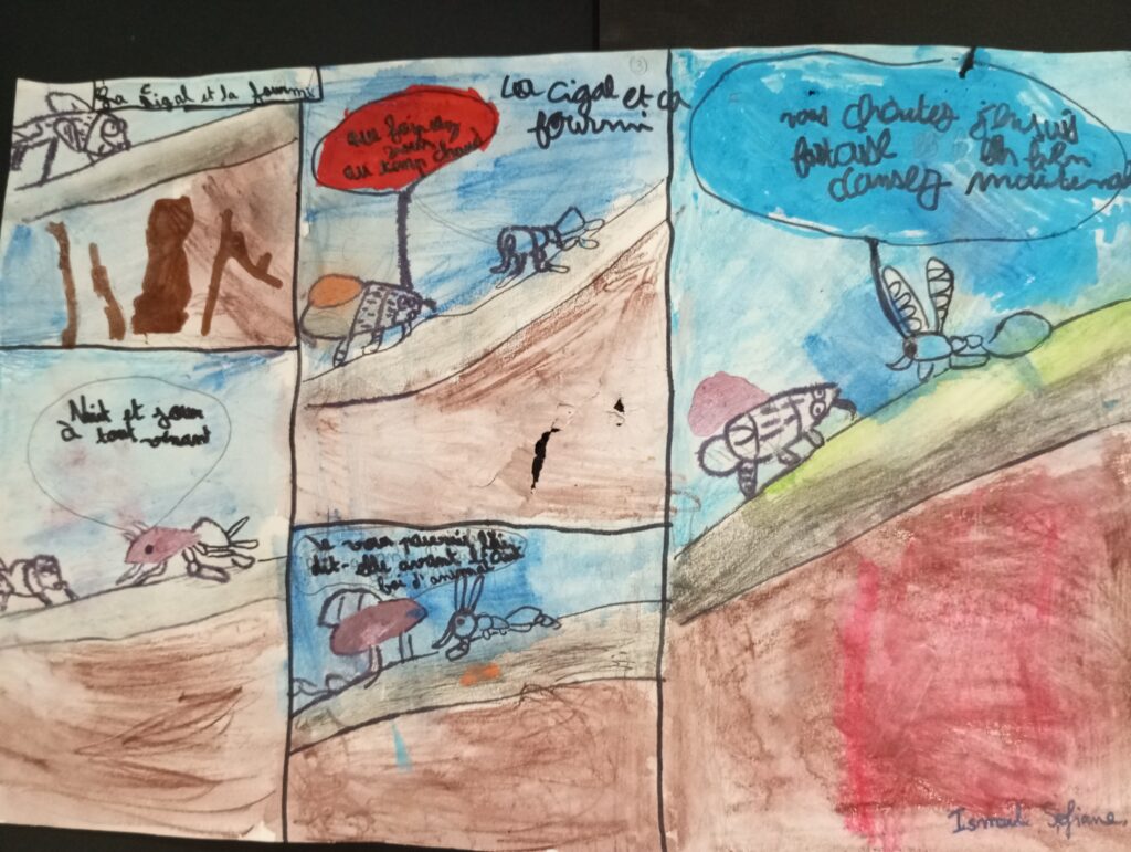Ce projet était amusant, j’ai aimé dessiner. Je connaissais déjà « la cigale et la fourmi ». Il y a un temps pour tout, un temps pour s’amuser, un temps pour travailler.