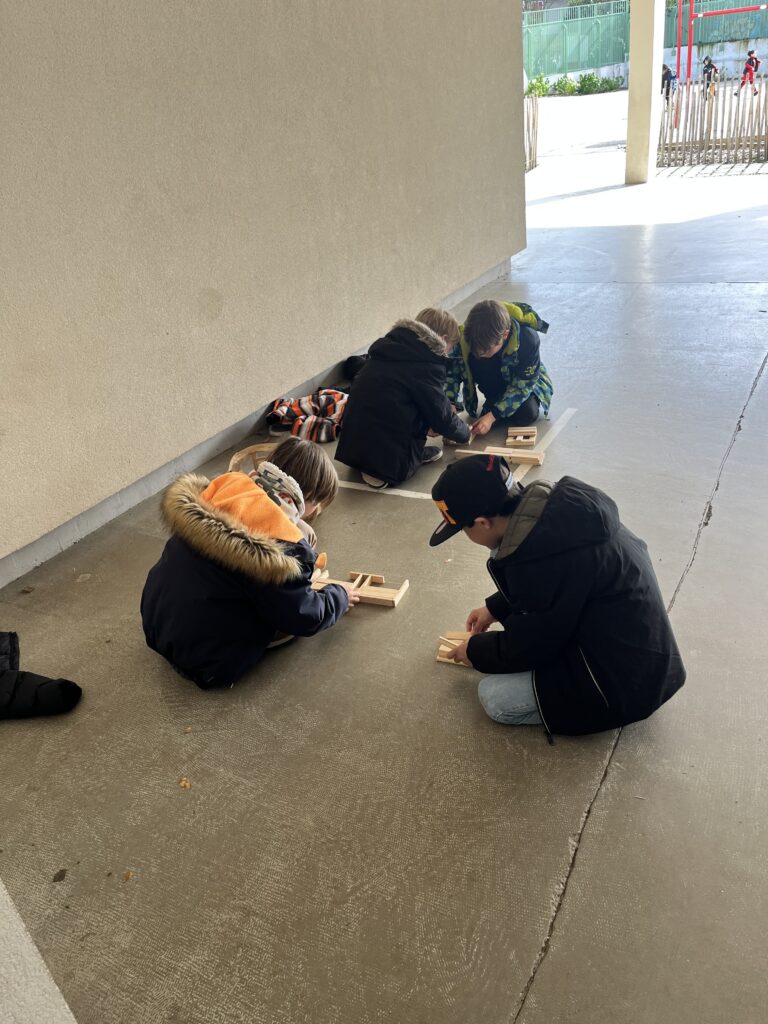 À l’issue du repas, les élèves d’élémentaire participent à diverses activités en extérieur ou en intérieur, telles que le basket, les jeux de ballon ou de société. L’organisation par groupes tournants permet à tous d’accéder aux différents espaces.